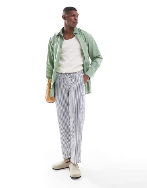 Sol Beach linen stripe beach trouser in navy and white