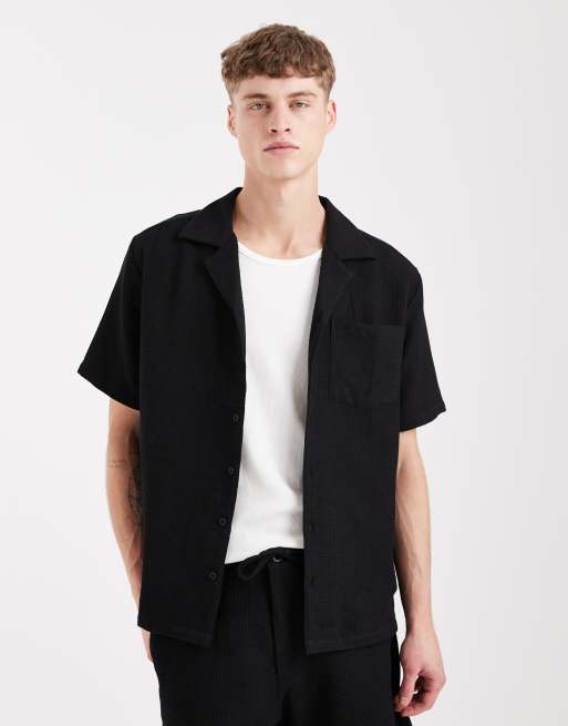 Sol Beach waffle short sleeve beach shirt in black