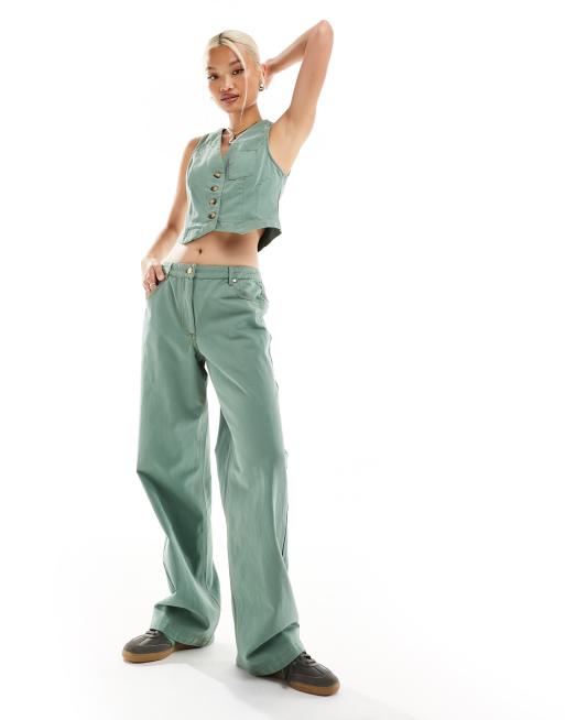 Something New X Chloe Frater straight leg baggy jeans co-ord in washed watercress green