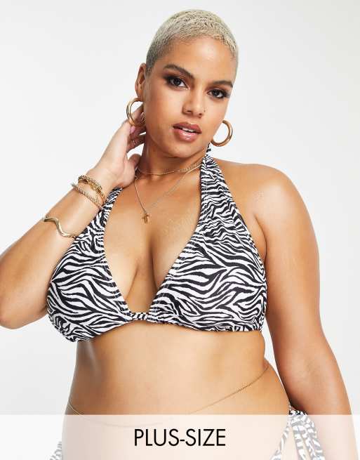 South Beach Curve Exclusive triangle halter bikini top in zebra print