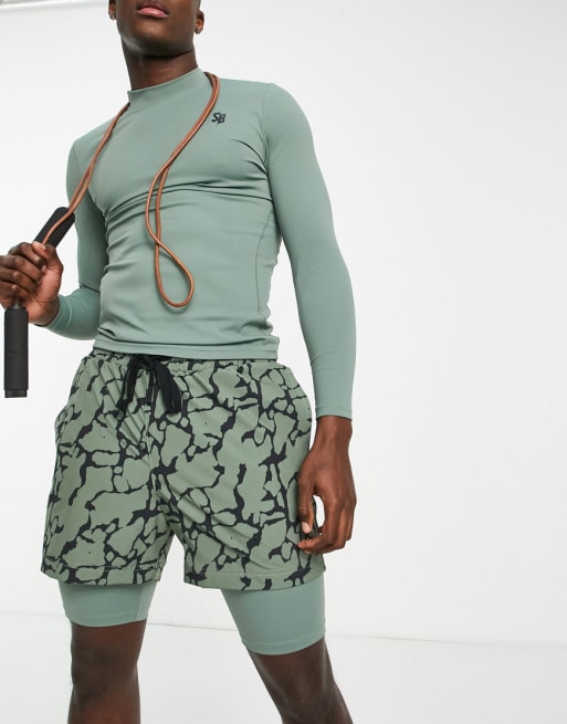 200 South Beach Man t-shirt and shorts with printed panel in khaki