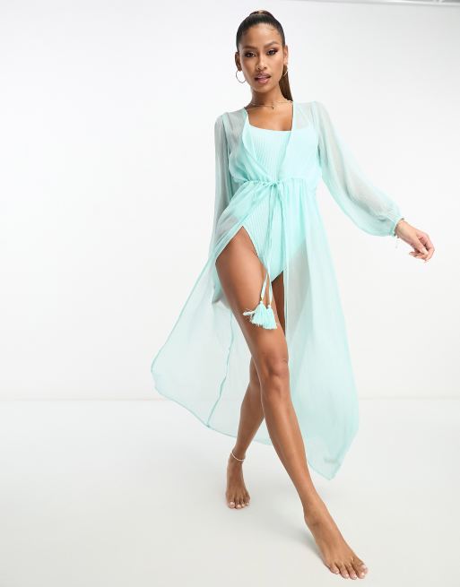 South Beach balloon sleeve chiffon maxi beach kaftan in light blue