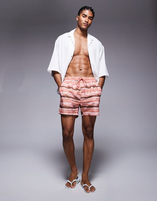 South Beach blur print swimshort in dark orange
