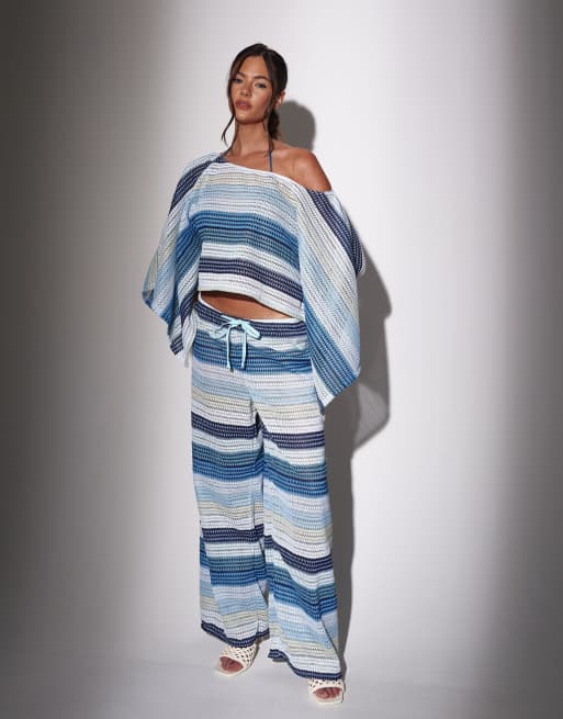 South Beach Crochet striped wide leg trousers in blue