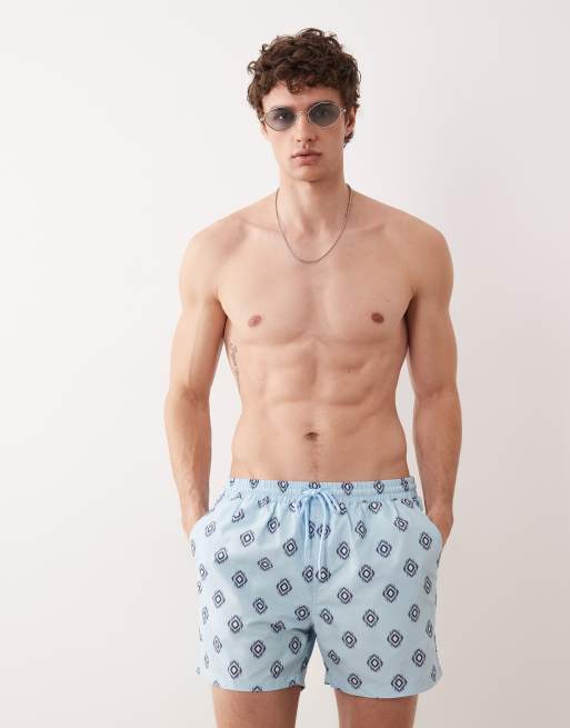 South Beach diamond geo print swim short in light blue