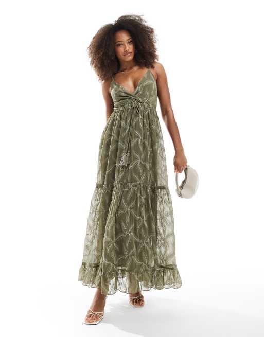 South Beach Embroidered cami maxi dress in khaki