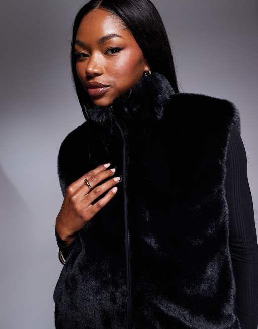 South Beach Faux fur gilet in black