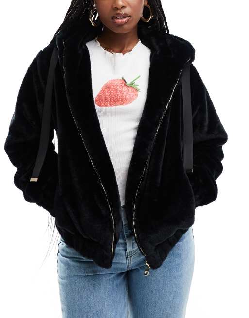 South Beach Faux fur hooded jacket in black