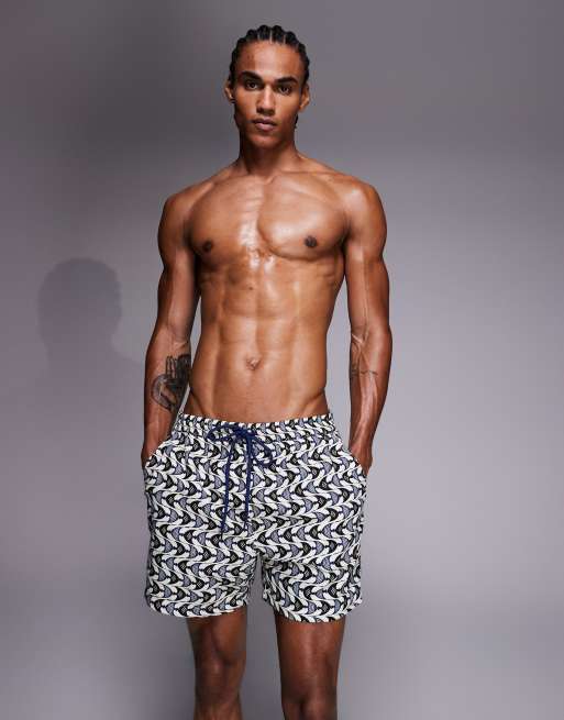 South Beach fish print swimshort in blue multi