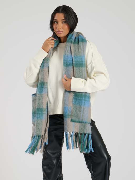 South Beach Fluffy pocket scarf with contrast stitch in blue