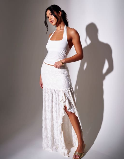 South Beach Halterneck flowy top & ruffle skirt co ord in cream