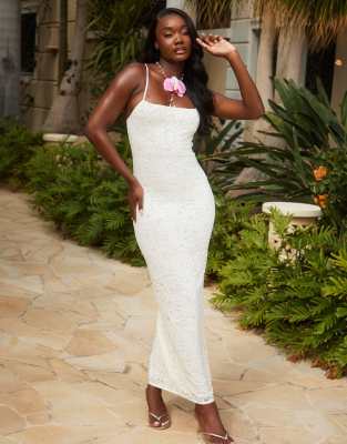 South Beach lace maxi beach dress with bow detail and back split in cream