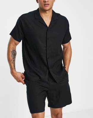 South Beach linen blend beach shirt in black