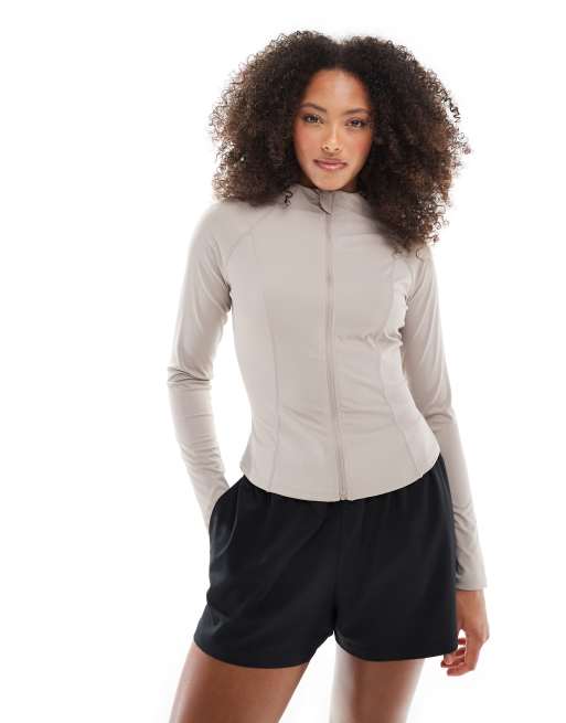 South Beach Long sleeved zip up top in stone