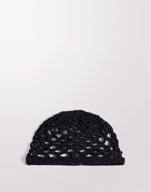 South Beach open weave crochet skull cap in black