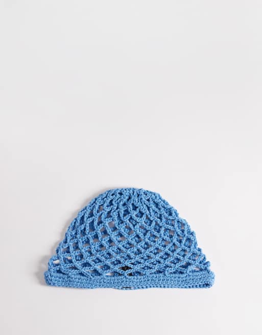 South Beach open weave crochet skull cap in blue