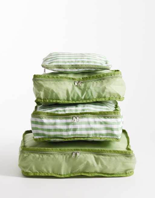 South Beach pack of 4 mixed packing cubes in green and gingham