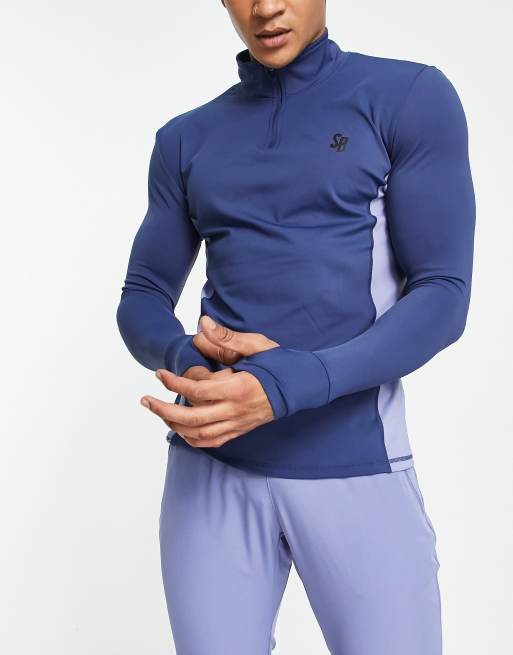 South Beach polyester 1/4 zip long sleeve top in navy