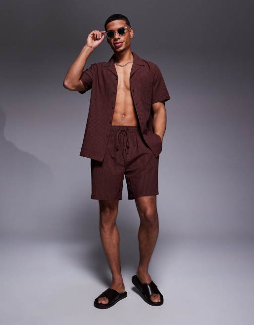 South Beach seersucker beach short co-ord in brown