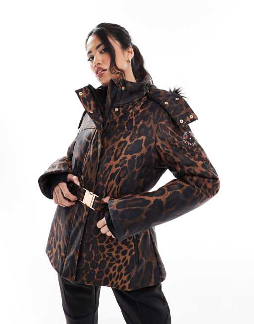 South Beach Shiny ski padded jacket in leopard print - BROWN