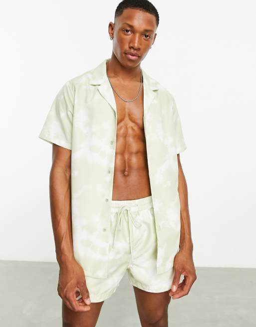 South Beach shirt co ord in sage tie dye print