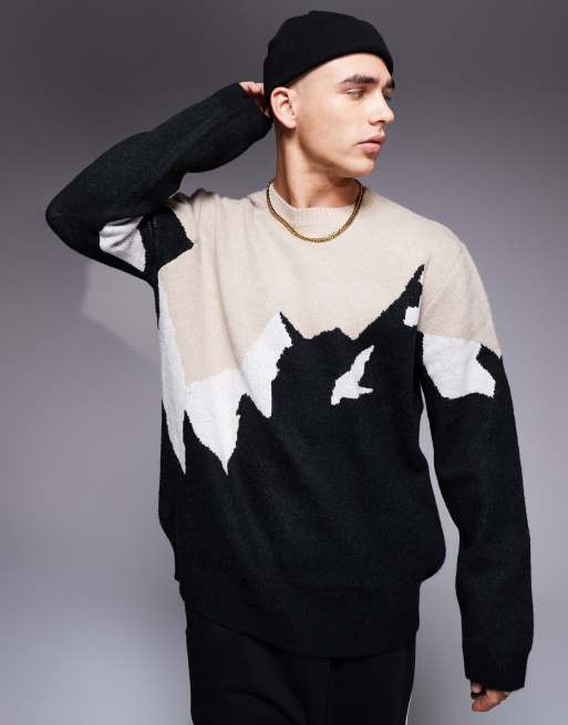 South Beach Ski mountain scene knitted crew neck jumper in black