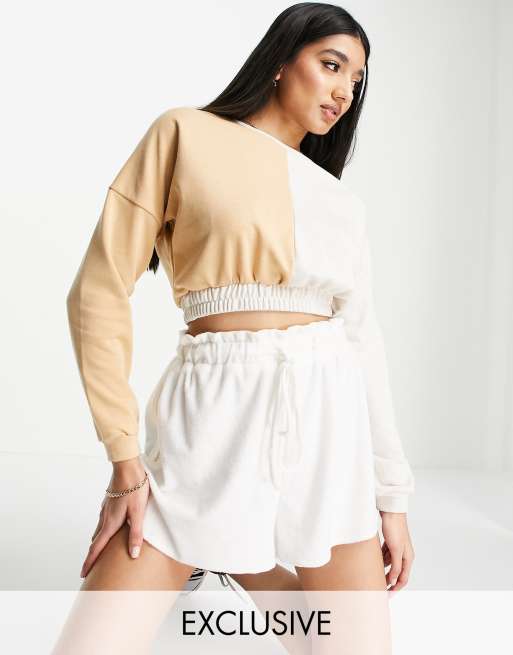 South Beach spliced crop boxy sweatshirt in sand