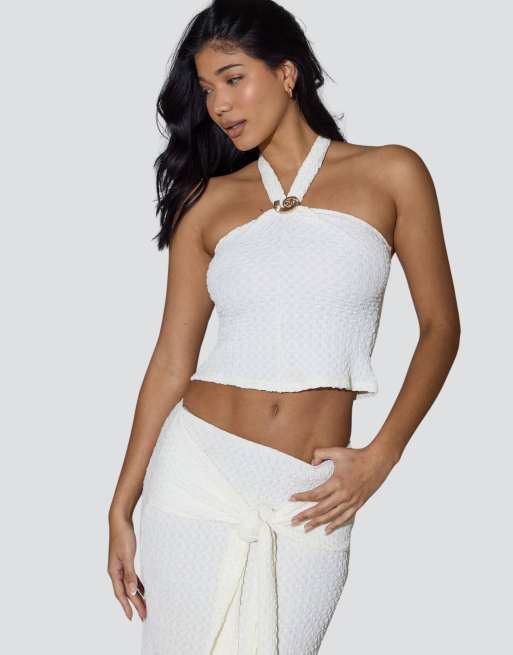 South Beach Textured halterneck top in cream