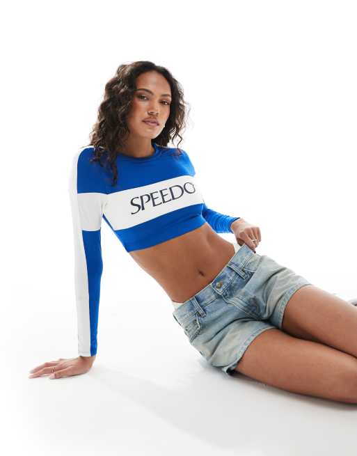 Speedo Swim tops colourblock long sleeve crop rash top in turkish sea