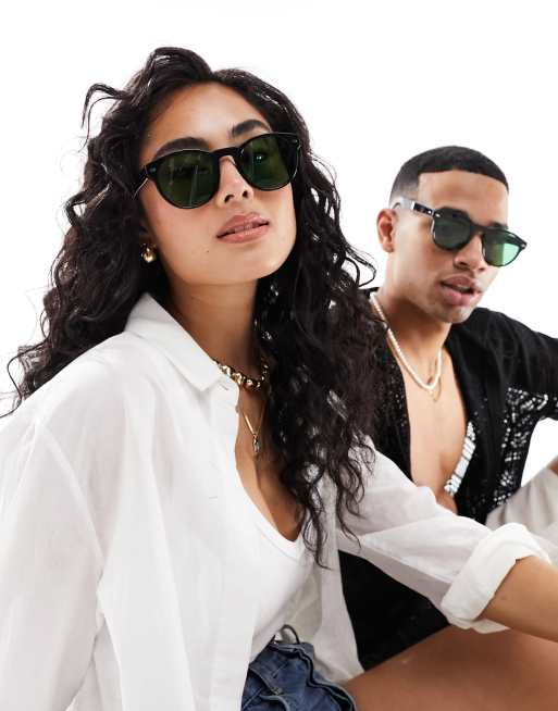 Spitfire cut ninety five round sunglasses in black with green lens