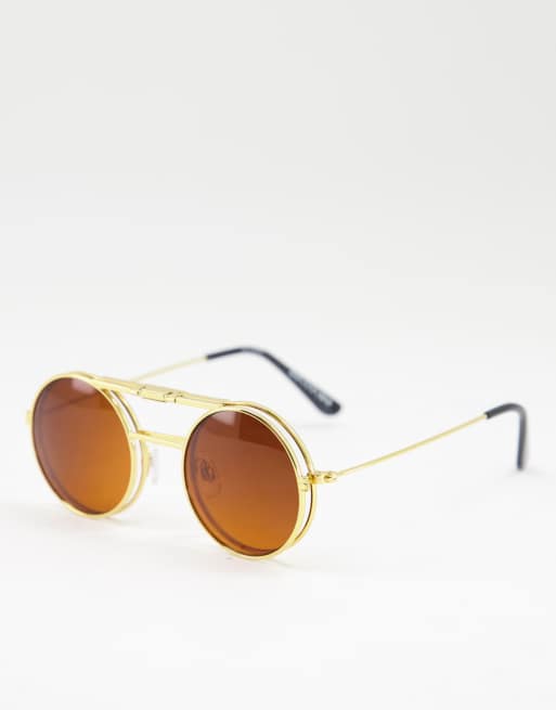Spitfire Lennon Flip round sunglasses in gold with brown lens