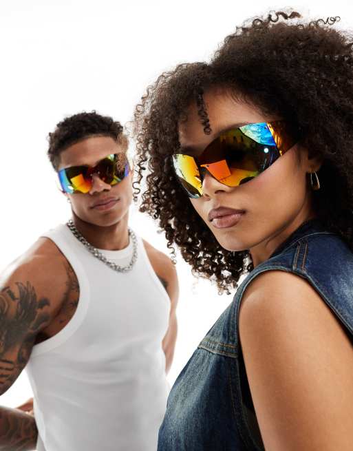 Spitfire sleaford oversized shield sunglasses in red mirror
