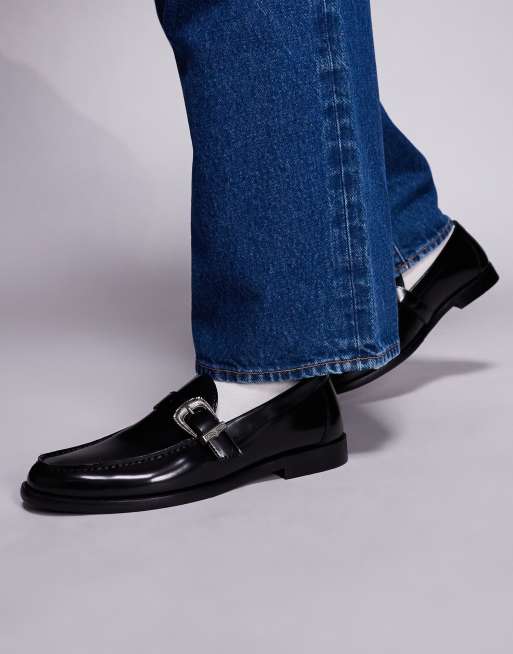 Steve Madden Alcona buckle detail penny loafers in leather black