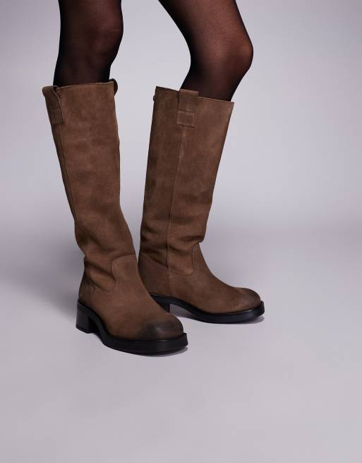 Steve Madden Banner contrast knee boot in leather taupe brown