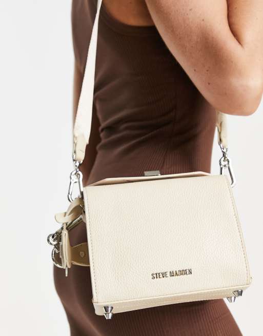 Steve Madden Bkween beige camera cross body bag with logo taping strap