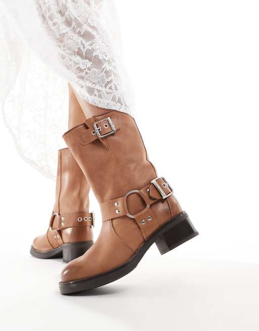 Steve Madden Blessing suede pull on biker boots in tan