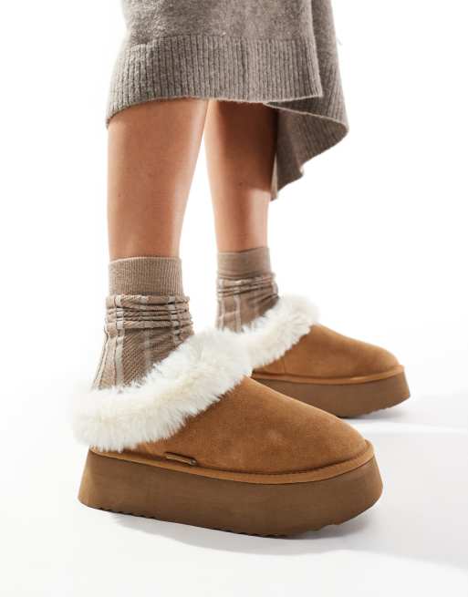 Steve Madden chaplin real suede faux fur lined slippers in brown
