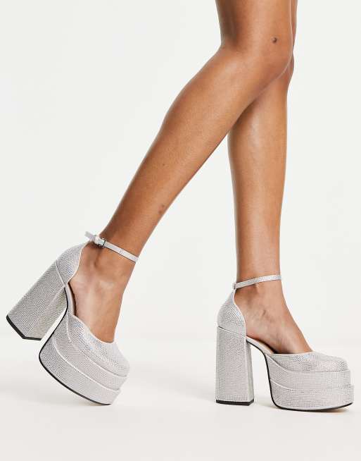 Steve Madden Charlize stacked platform shoes in silver rhinestone