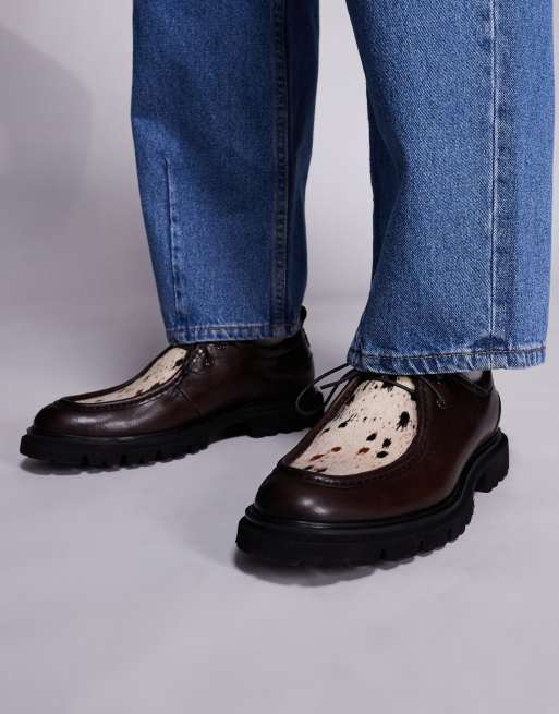 Steve Madden cow print detail chunky lace up loafers in black