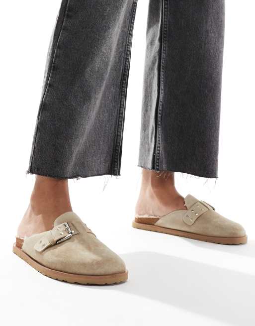 Steve Madden Evergeen mule clogs with faux fur lining in sand suede