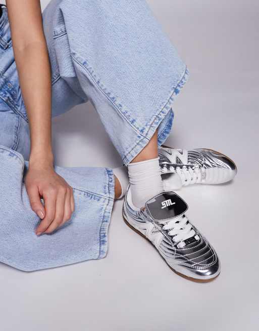 Steve Madden Freekick trainers with fold over detail in silver