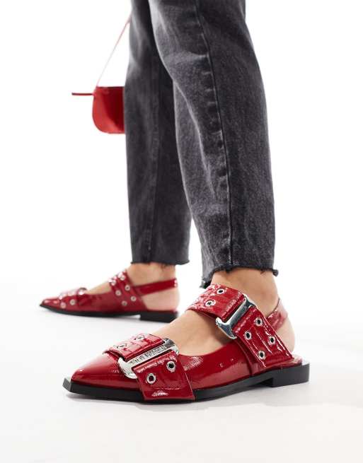 Steve Madden Grand Ave pointed flat shoes with buckle detail in red patent