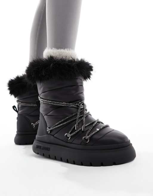 Steve Madden Ice-Storm snow boot with embellished lace in black