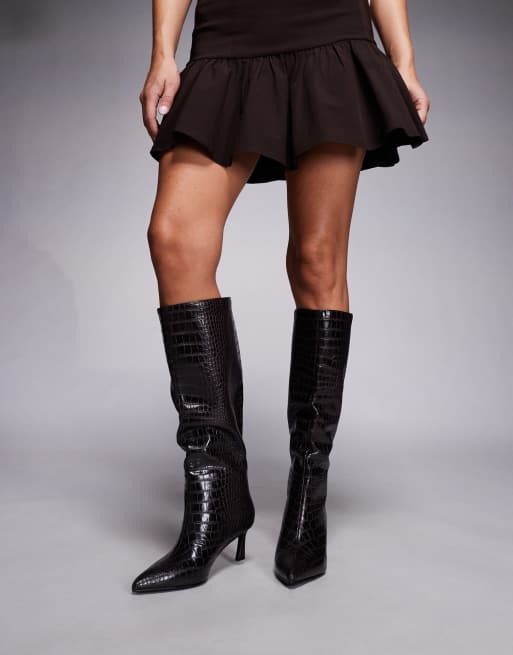 Steve Madden Lavan knee boot in croc chocolate
