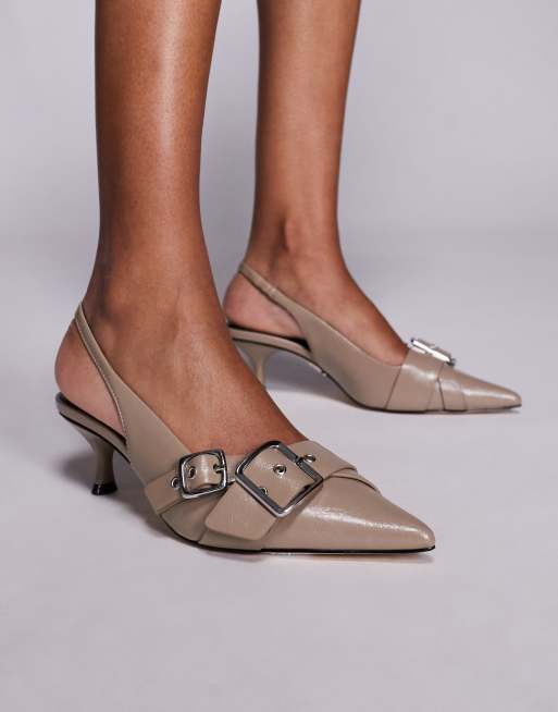 Steve Madden Lezley sling back kitten heels with buckle details in patent taupe