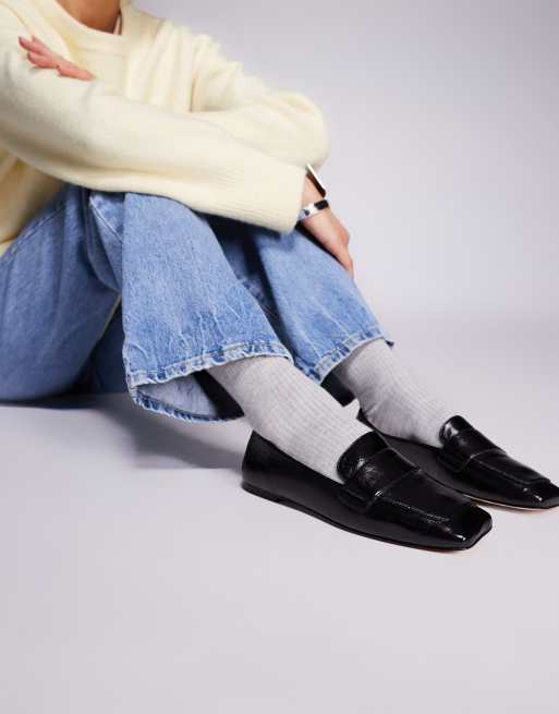 Steve Madden Monarc square toe loafer in black leather crinkle