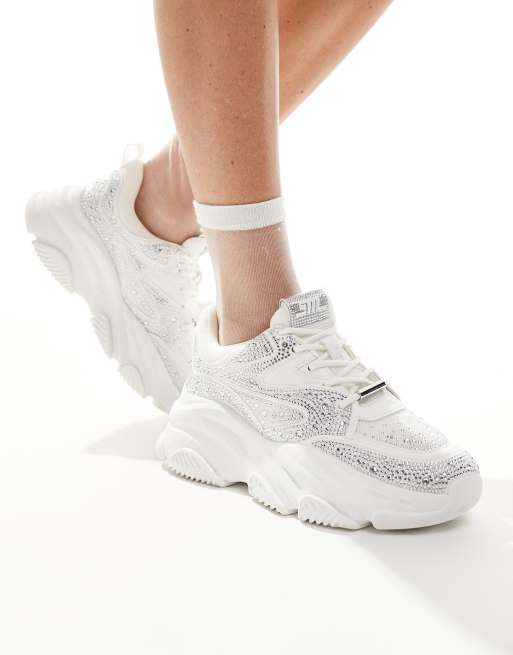 Steve Madden Privy Embelished Chunky Trainers in White