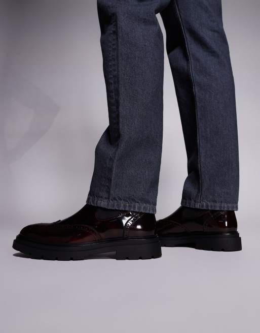 Steve Madden Stancie chelsea boots with brogue detail in burgundy