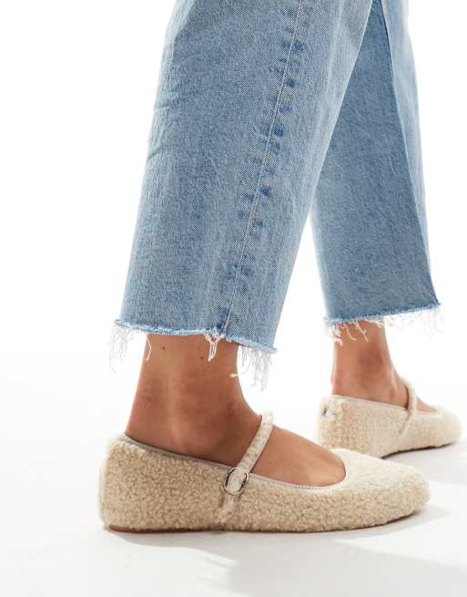 Steve Madden Vinetta-F ballet flats with strap in natural fluffy borg