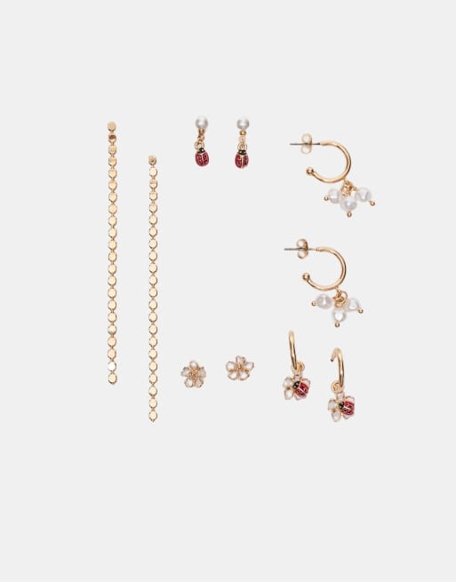 Stradivarius 9-pack of ladybird earrings in gold